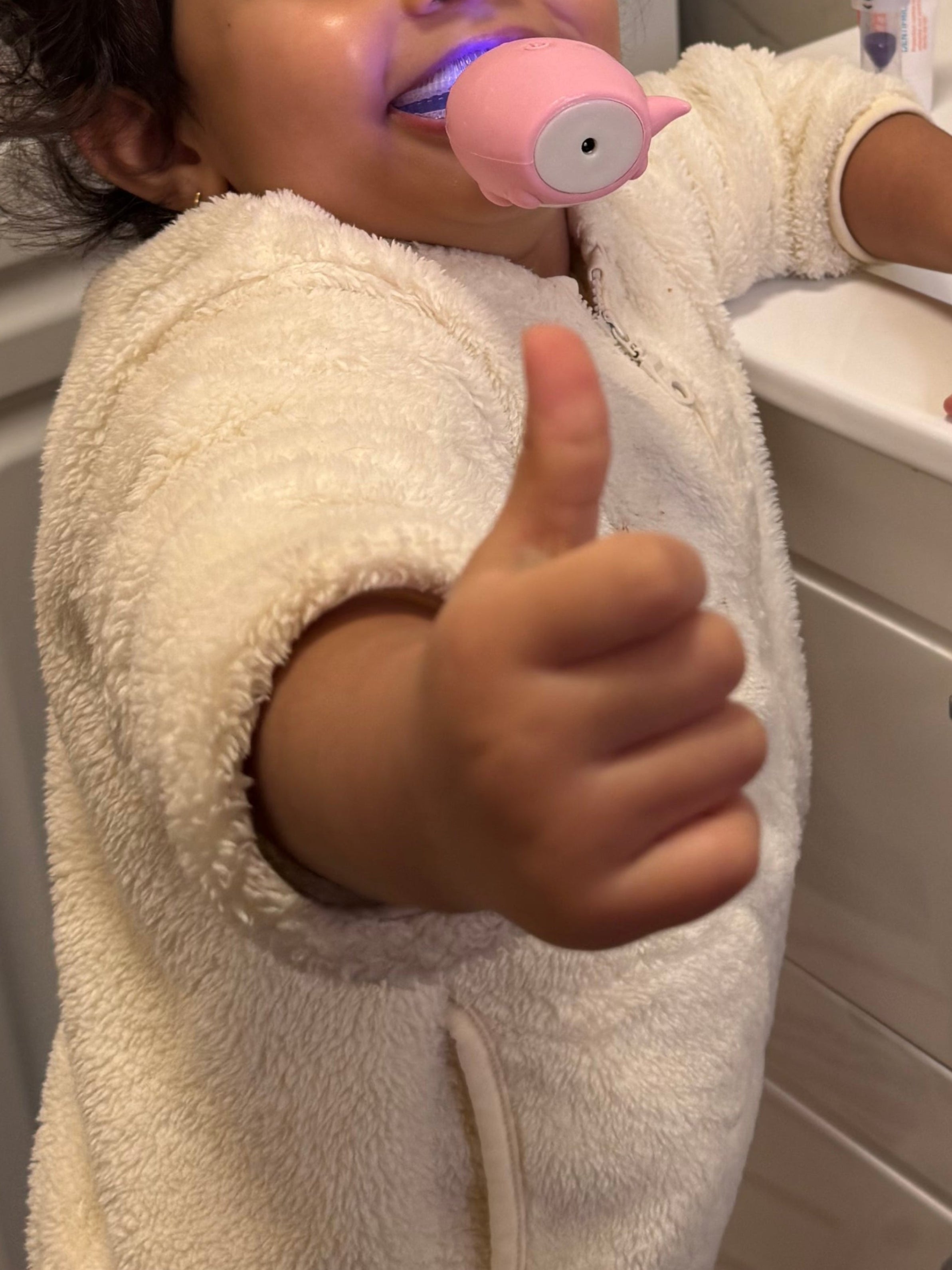 Ce n'est pas qu'une brosse à dents, c'est un outil de transition. Mon but est de transformer un moment souvent conflictuel en une expérience positive. Une fois que l'enfant a pris l'habitude de prendre soin de son sourire sans stress, le passage à une brosse classique plus tard se fait avec beaucoup plus de facilité.